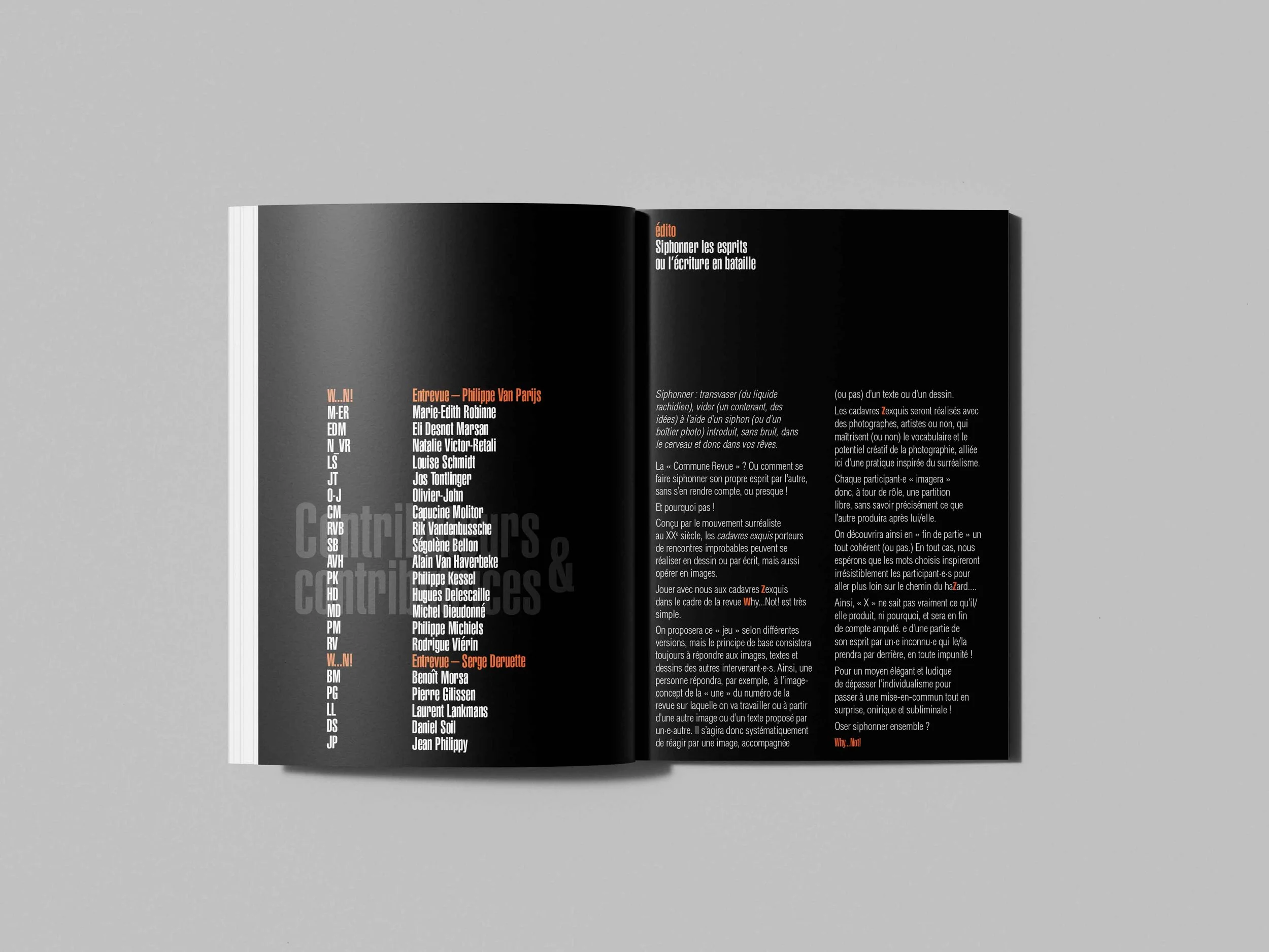 D’un siphonnage à l’autre (ou vers l’Autre), nous avons cherché à présenter ce n°1 comme étant un dessein en marche, sous la forme d’une spirale autonome de ce néologisme “Siphonner les esprits”.